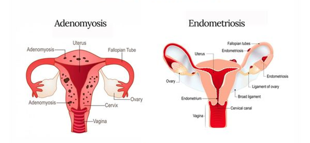 showing the differences between endometriosis and adenomyosis: